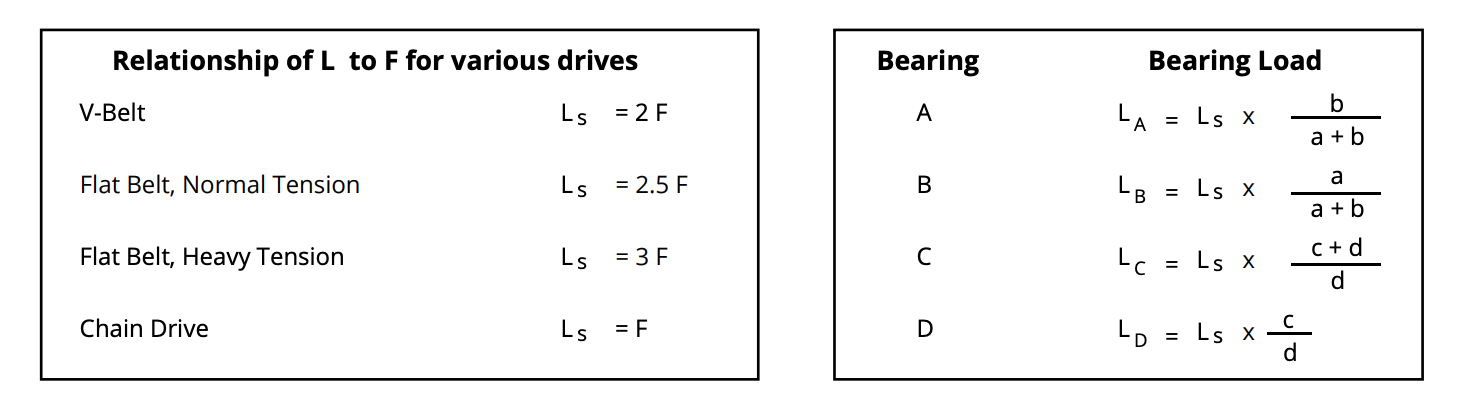To determine your spherical plain bearing load, know that the tangential force (F) at the pulley or sprocket of a belt or chain drive must first be converted to shaft load (Ls), and then to spherical plain bearing load.