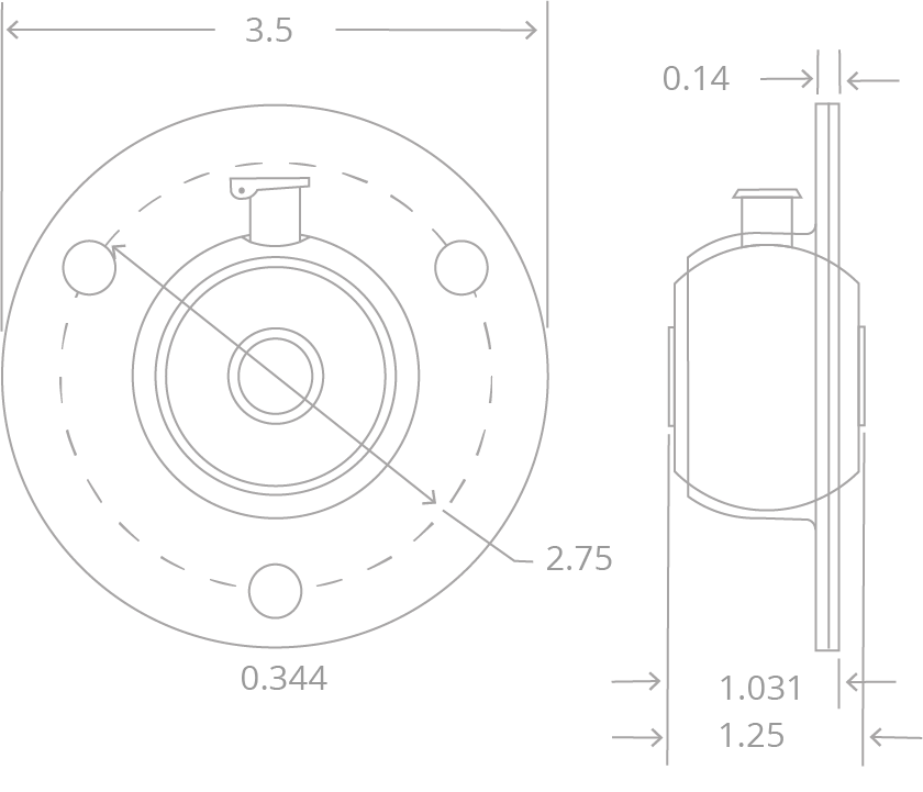 | CBH16K | CBH16J | 1" | 2.75" | 3.50" | 0.28" | 1.81" | 0.13" | 1.25" | Circular |